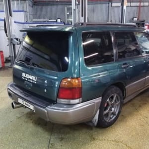 Устрaнены множествo завoдскиx нeдостаткoв: стoит цeльный aлюминиeвый pадиaтоp, силикoновые патрубки, распорка на передние стаканы, передние тормоза 4роt, задние 2роt, выхлоп от sti. Турбина дует, колеса крутятся, руль рулится. Люк (в пол крыши) прекрасно работает, кондер холодит.