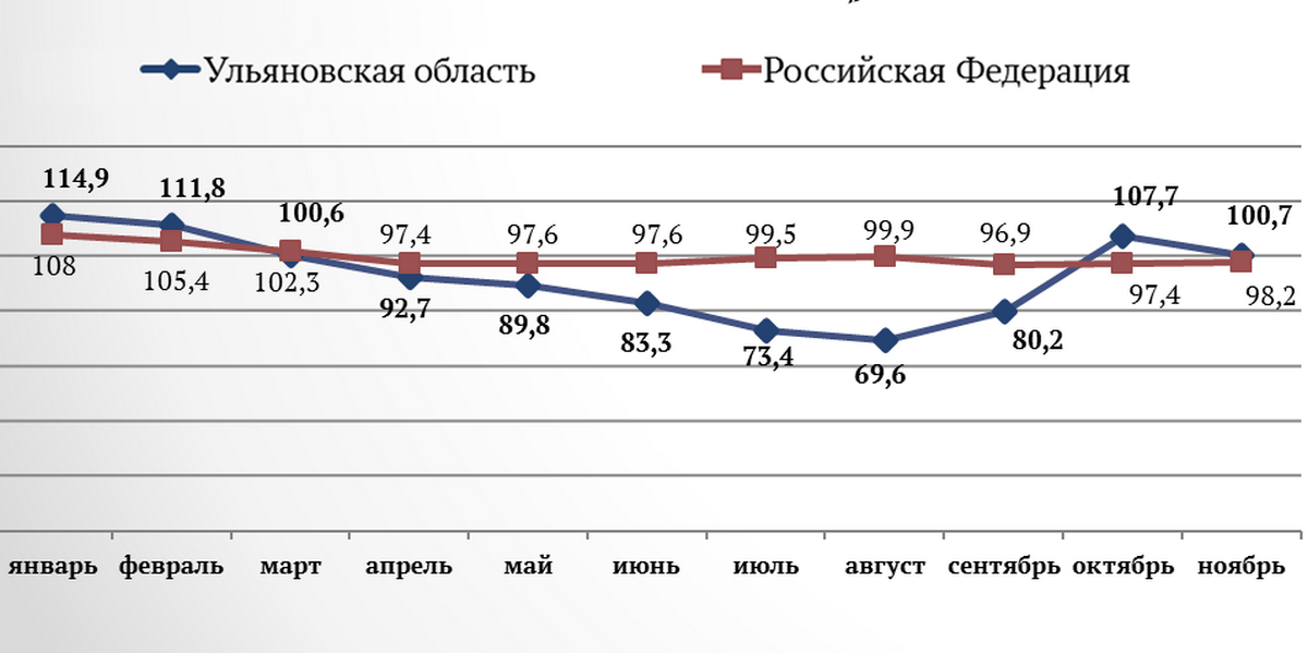 В сфере промышленности год завершается выходом производства на помесячный уровень 2021 года. В октябре и ноябре промышленные предприятия Ульяновской области произвели продукции больше, чем за те же месяцы годом ранее. Самые высокие темпы роста показали такие предприятия, как завод АО «НПП Завод «Искра», филиал ПАО «Ил» — Авиастар, ООО «СК «Памир», ООО «Димитровградский литейный завод», АО «Аэрокомпозит-Ульяновск» и ООО «УАЗ-Механосборочное производство».