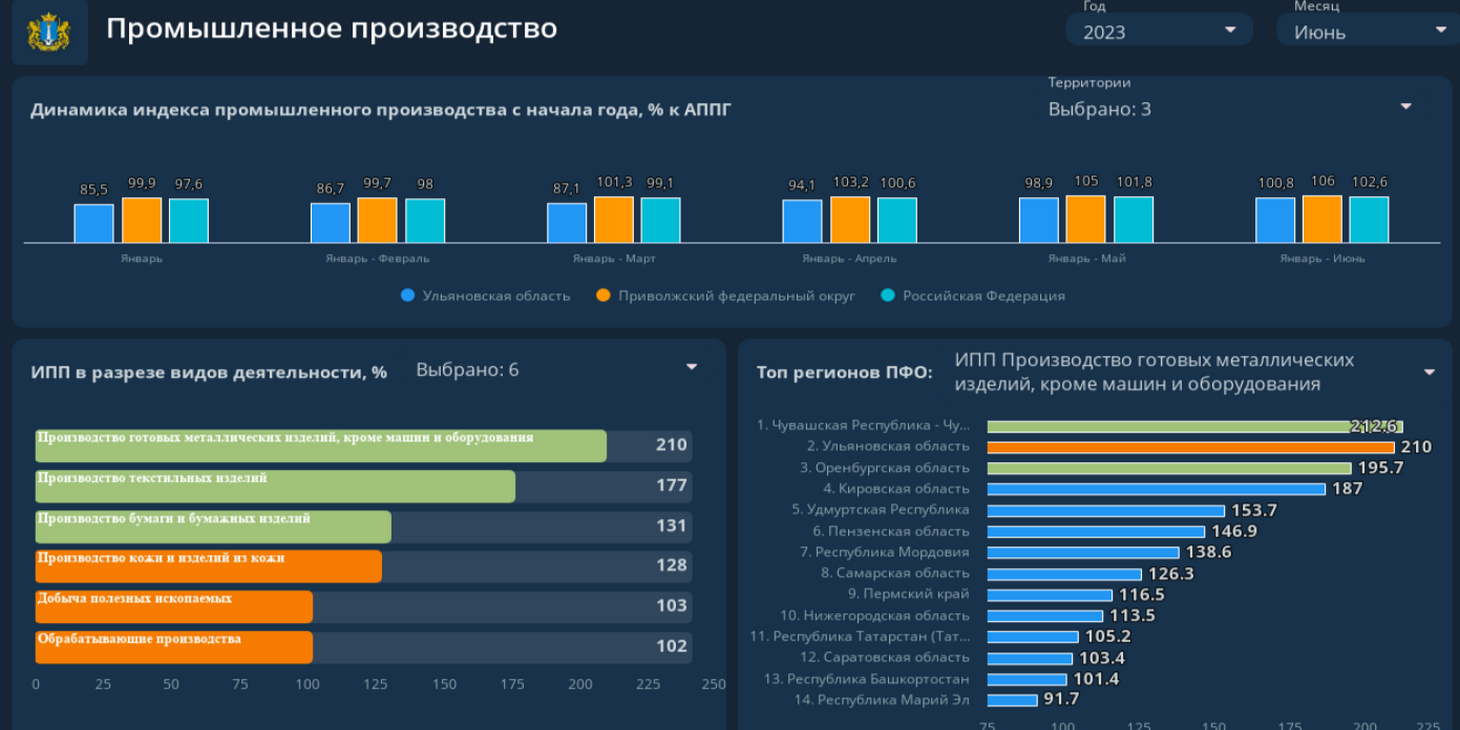 В Ульяновской области индекс промышленного производства за первое полугодие составил 100,8%