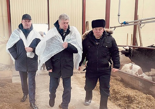 На одной из ферм губернатор своими глазами увидел, в каких условиях содержится скот, смог оценить новый механизм доения коров и осмотрел современный холодильник для больших объёмов молока.