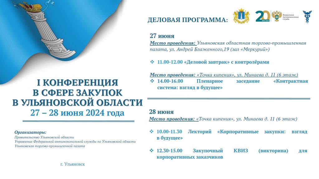 С 27 по 28 июня 2024 года в Ульяновской области пройдет I Конференция в сфере закупок, которая вновь объединит профессионалов закупочной сферы.