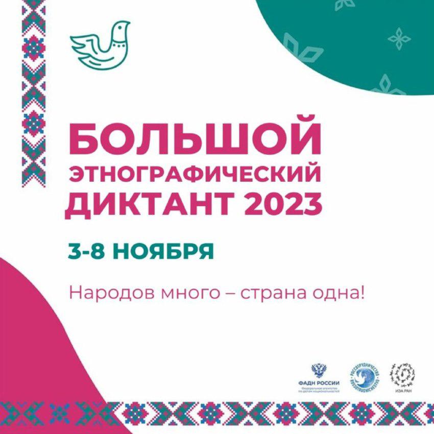 Международная акция «Большой этнографический диктант» проводится с 2016 года. В 2023 году девиз акции «Народов много – страна одна!» и проходить мероприятие будет в течение пяти дней с 3 по 8 ноября.