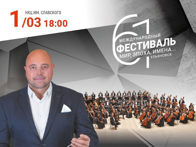 1 марта в НКЦ им. Славского состоится Открытие 61 Международного фестиваля «Мир, Эпоха, Имена...». Ульяновский государственный академический симфонический оркестр «Губернаторский» под управлением главного дирижёра Эдуарда Дядюры исполнит программу, посвящённую 150-летию Сергея Рахманинова.