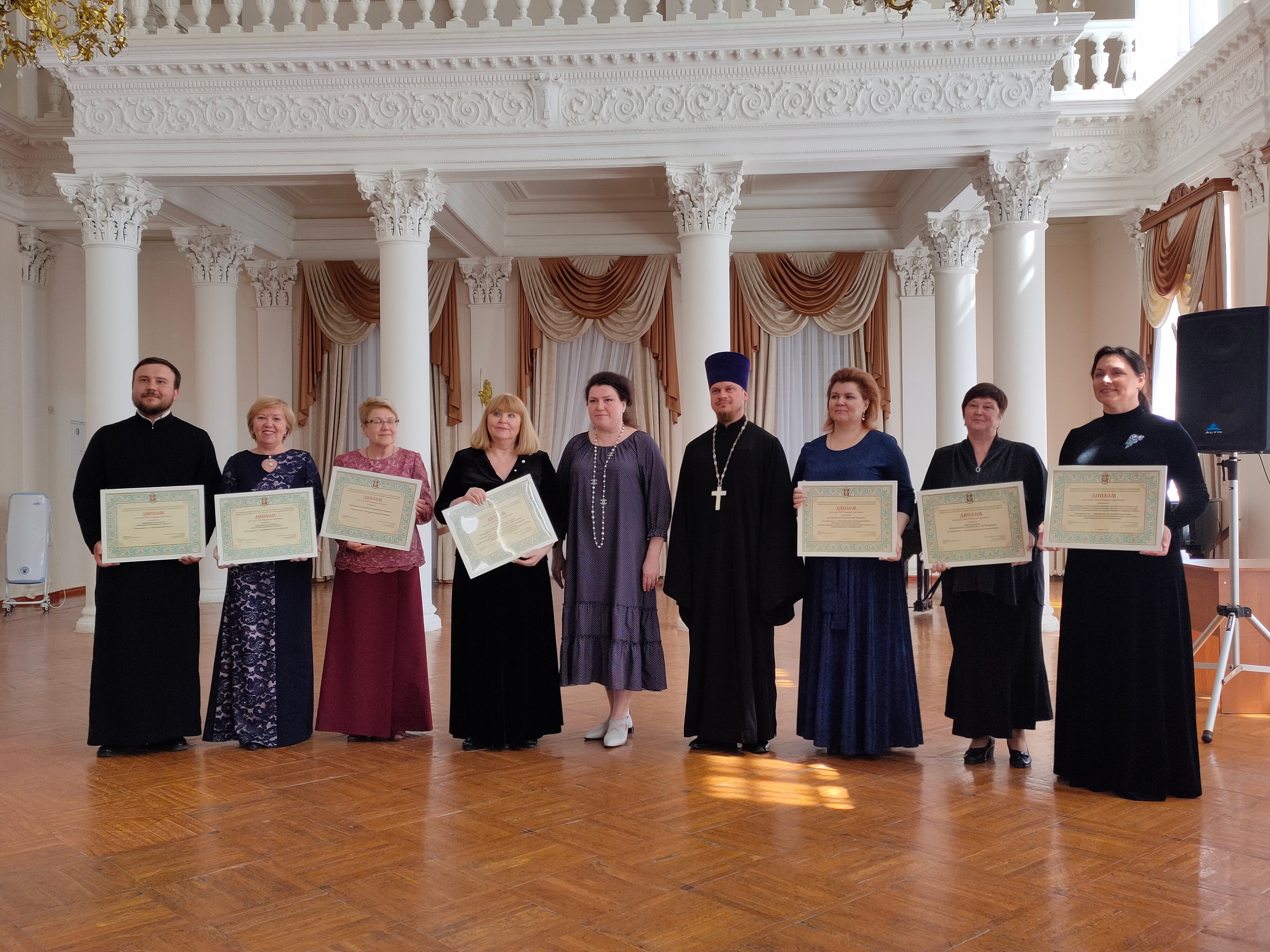 Руководитель епархиального культурно-просветительского отдела иерей Николай Генсицкий и министр искусства и культурной политики Ульяновской области Евгения Сидорова вручили дипломы всем участникам фестиваля имени великого Патриаршего архидиакона.
