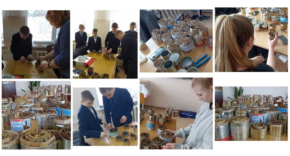 Ребята узнали, как изготовить окопную свечу своими руками. Готовые «свечи» будут отправлены на передовую вместе с гуманитарной помощью.