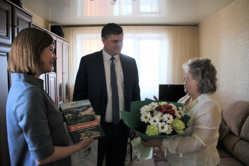 Ректор Ульяновского государственного педагогического университета им. И.Н. Ульянова Игорь Петрищев и председатель Первичной профсоюзной организации преподавателей и сотрудников УлГПУ Юлия Веселовская поздравили заслуженного работника образования Ульяновской области Татьяну Есенкову с Международным женским днём