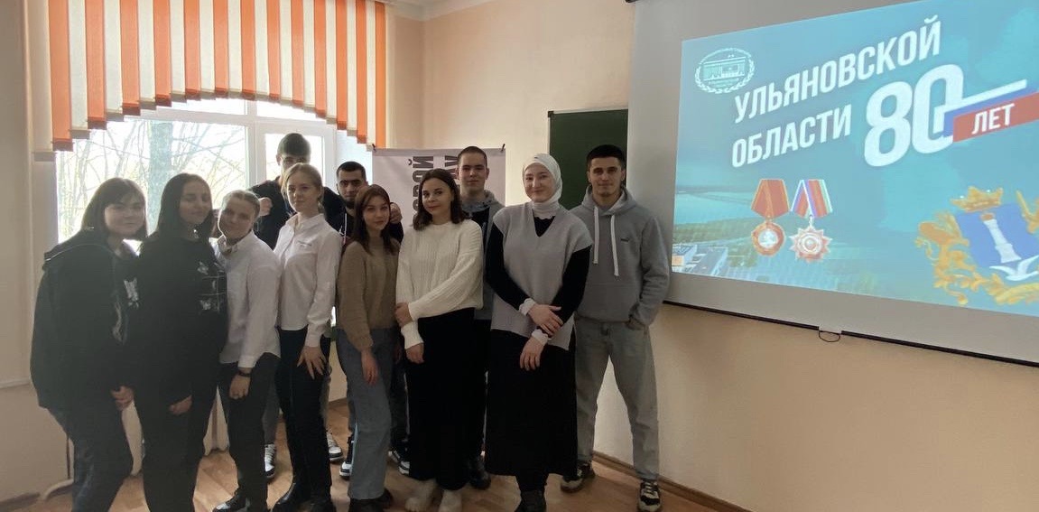 Куратор студенческого правового центра УлГАУ Марина Шпак провела для студентов 2 курса колледжа агротехнологий и бизнеса мероприятие, посвященное празднованию юбилея региона, и рассказала о символике Ульяновской области.