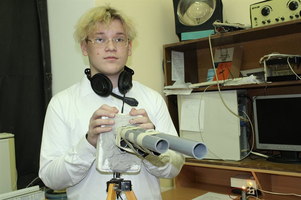 Илья Мартьянов учится в восьмом классе. На фестивале он представил свое изобретение – звуковую пушку.