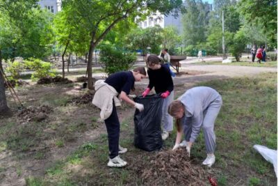 К замене плитки уже приступили. Предварительно гимназисты прибрали территорию от мусора и пропололи цветы от сорняков.