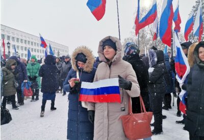 На площадь Ленина горожане пришли с российскими флагами и рассказали корреспонденту ultoday73.ru, что в преддверии Дня защитника Отечества нужно поддержать тех, кто сейчас на передовой.