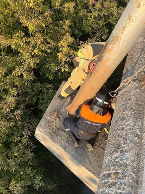 Надев на женщину альпинистское снаряжение, спасатели застраховали ее к опоре и привели в чувство с помощью аммиака. Далее начали подъем при помощи лестницы и альпинистского снаряжения. На половине пути женщина снова потеряла сознание, но дежурные смены и специалисты ПЧ - 7 повторно привели даму в чувства и передали медикам.