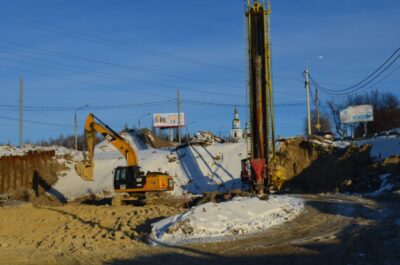 Так, под путепроводом сооружают новые опорные конструкции. По информации подрядчика, готовят площадку под опору № 1. По второй опоре осталось забить шесть свай Франки, потом забетонируют фундаментную плиту, чтобы ставить тело самой опоры. Вдоль башни высоковольтной ЛЭП строители делают подпорную стенку, которая необходима для защиты конструкции после запуска транспортного движения под путепроводом.