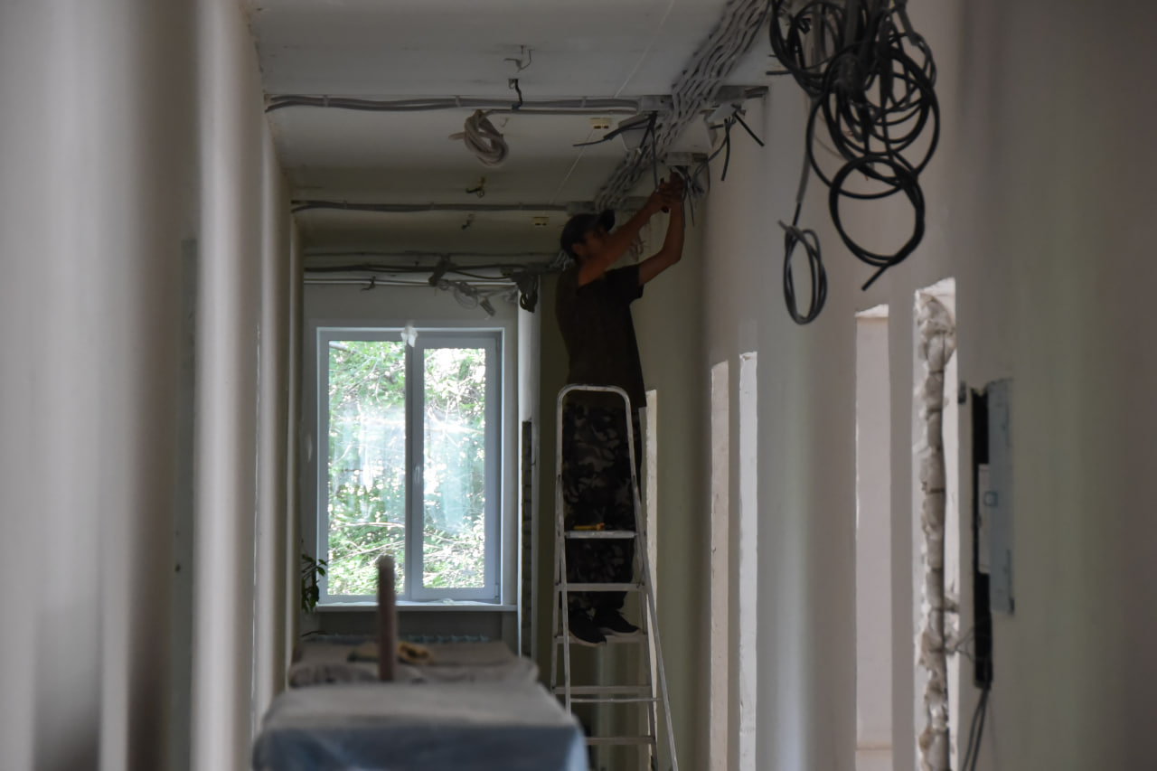 На 10 июля в учреждении оштукатурены стены, на втором и третьем этажах заменены полы, смонтирована проводка и пожарная сигнализация, установлены новые окна, обустраивается система шумоизоляции.