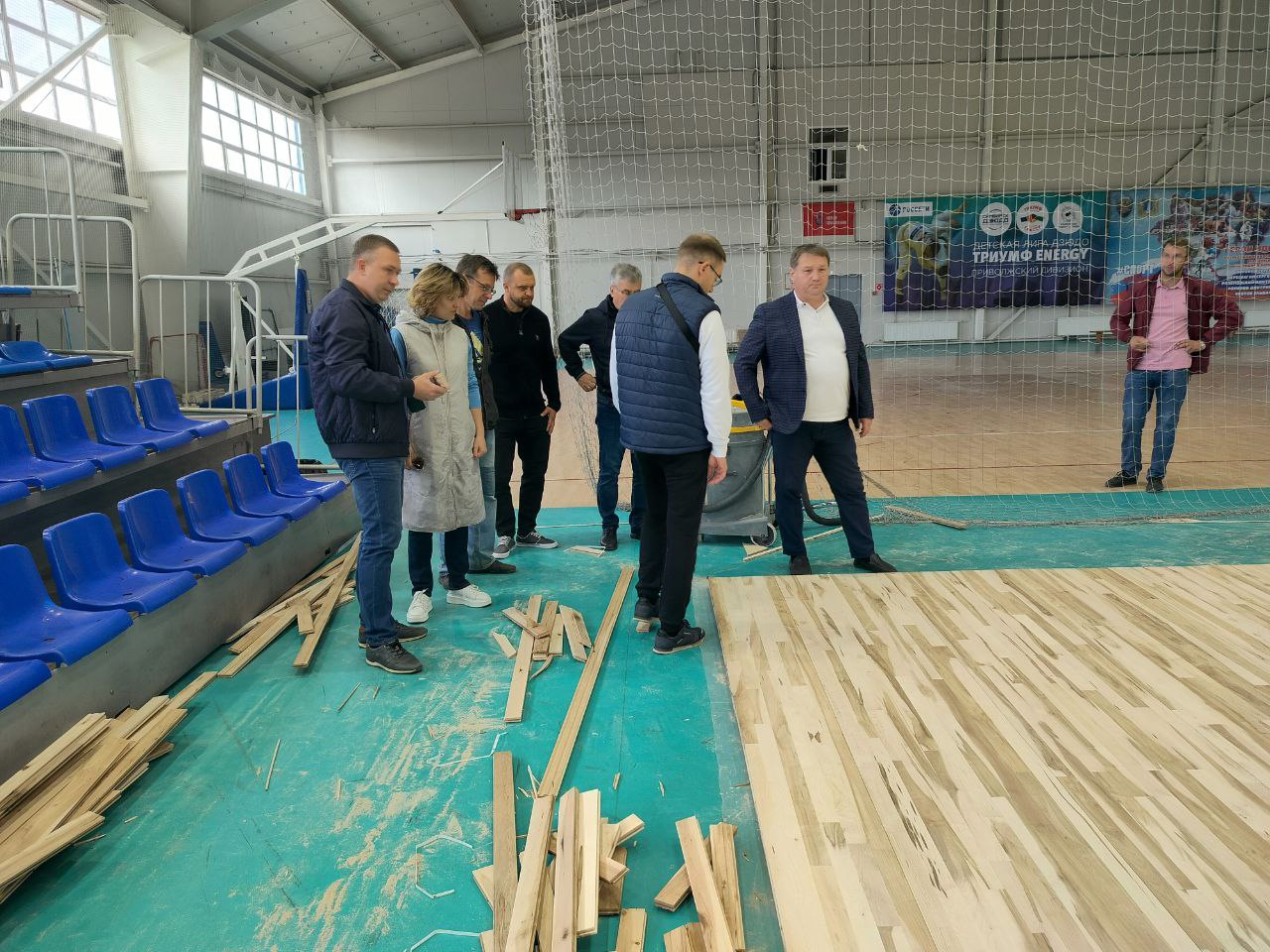 В настоящее время ведётся шпаклёвка паркета, на него впоследствии будет нанесена грунтовка и два слоя лака, между которыми нанесут разметку. В зале смонтировано новое освещение, планируется установка нового табло. Глава города еженедельно проверяет ход модернизации спортивного объекта, постоянный контроль качества выполняемых работ ведут инженеры МБУ «Стройзаказчик».