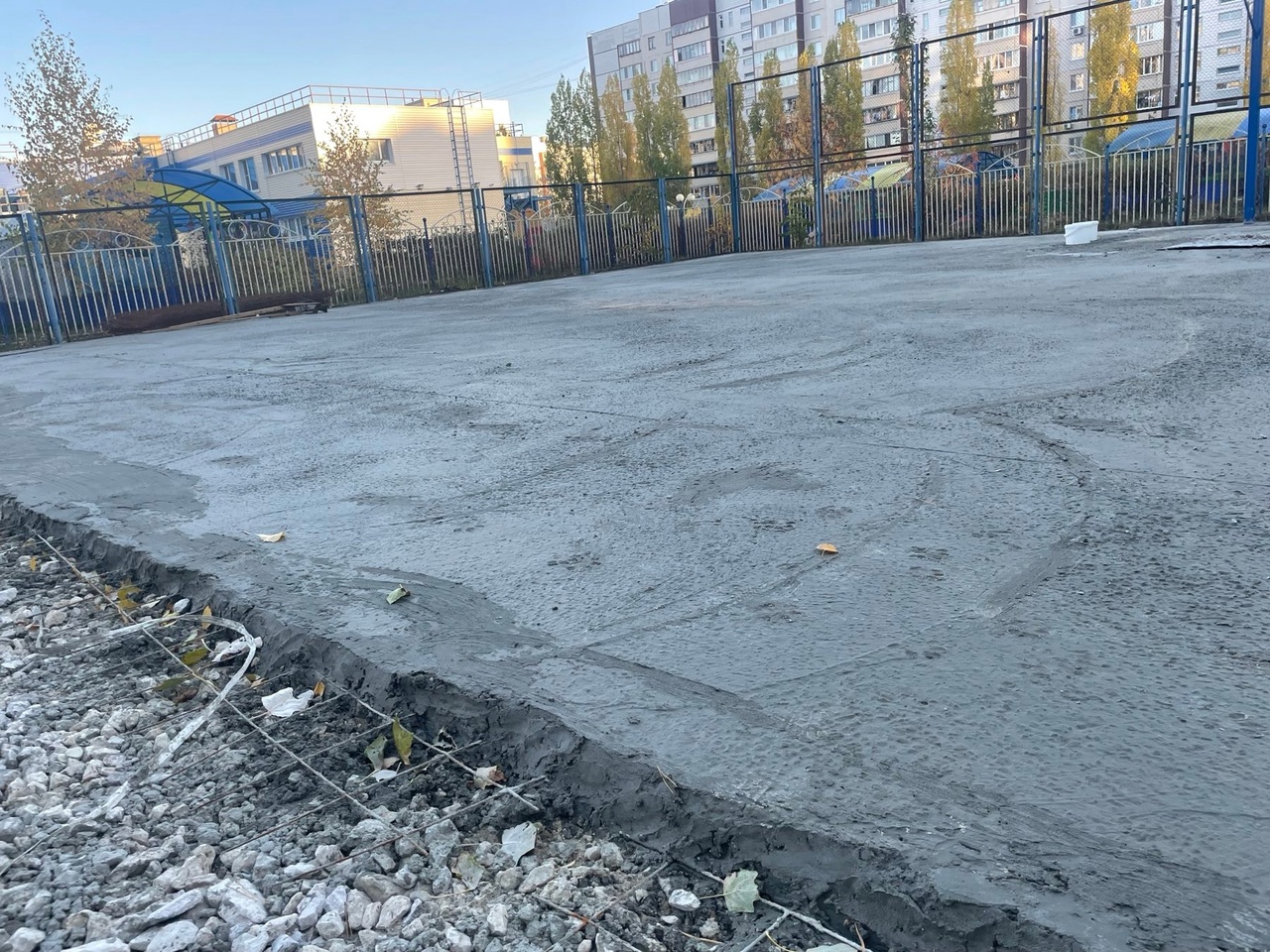 — Ребята постоянно получали травмы, проводить там время уже было небезопасно, и благодаря народной инициативе на этом месте появится в ближайшее время универсальная спортивная площадка. Сегодня подрядчик завёз строительную арматуру, рабочие установили поребрики, провели заливку площадки бетоном, установили баскетбольные щиты. Будем продолжать контролировать качество выполняемых работ, — рассказал Владимир Ожогин.