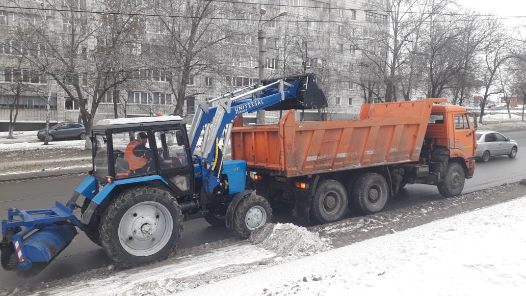 Комплексы по погрузке и вывозу снега работают на проспектах Нариманова и Гая, улицах Инзенской, Октябрьской, Оренбургской и 40-летия Победы. При очистке Инзенской применяется Бобкэт с гидромолотом, разбивающим затвердевшие в результате ледяных дождей и морозов снежные валы на краях проезжей части. Один самосвал направлен в помощь по вывозу снега со стадиона «Труд» имени Льва Яшина.