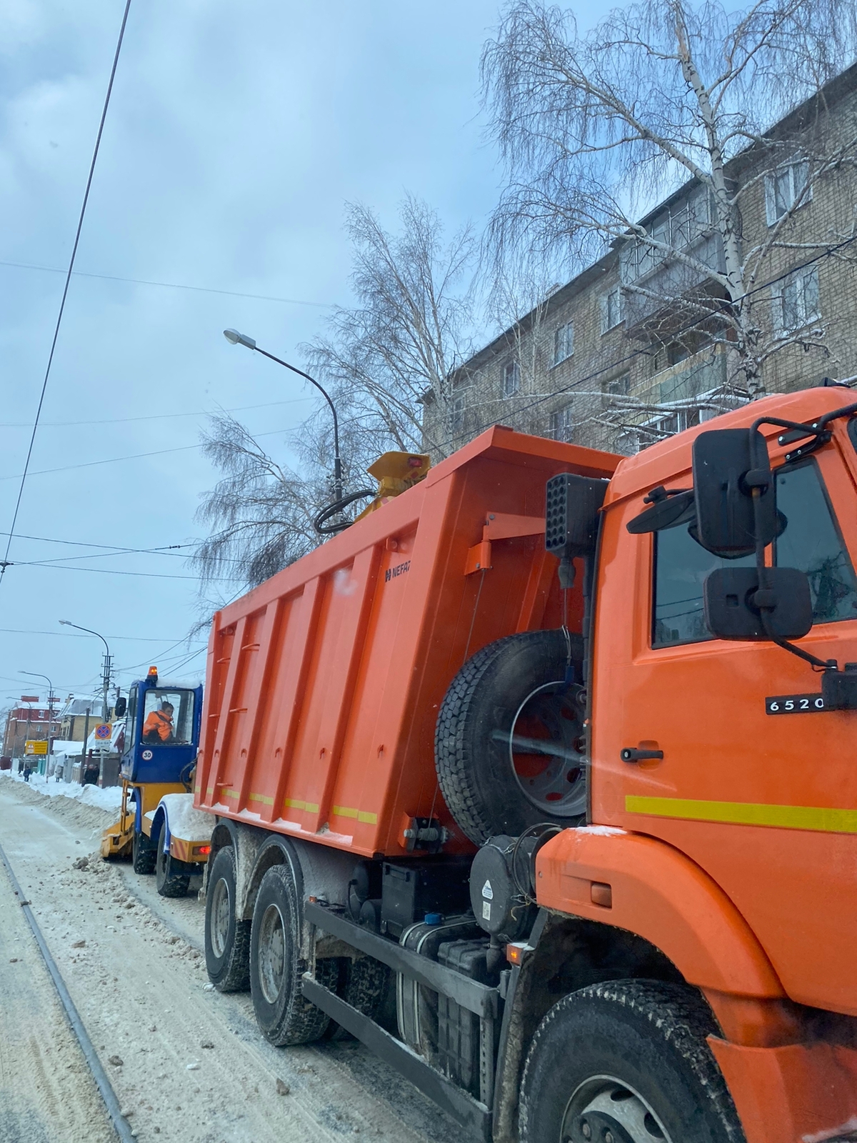 Минувшей ночью, с 6 на 7 января, на улицах города работало 74 единицы спецтехники МБУ «Дорремстрой», с проспекта Нариманова, улиц Карла Маркса и Спасской самосвалы совершили 65 рейсов по вывозу снега,