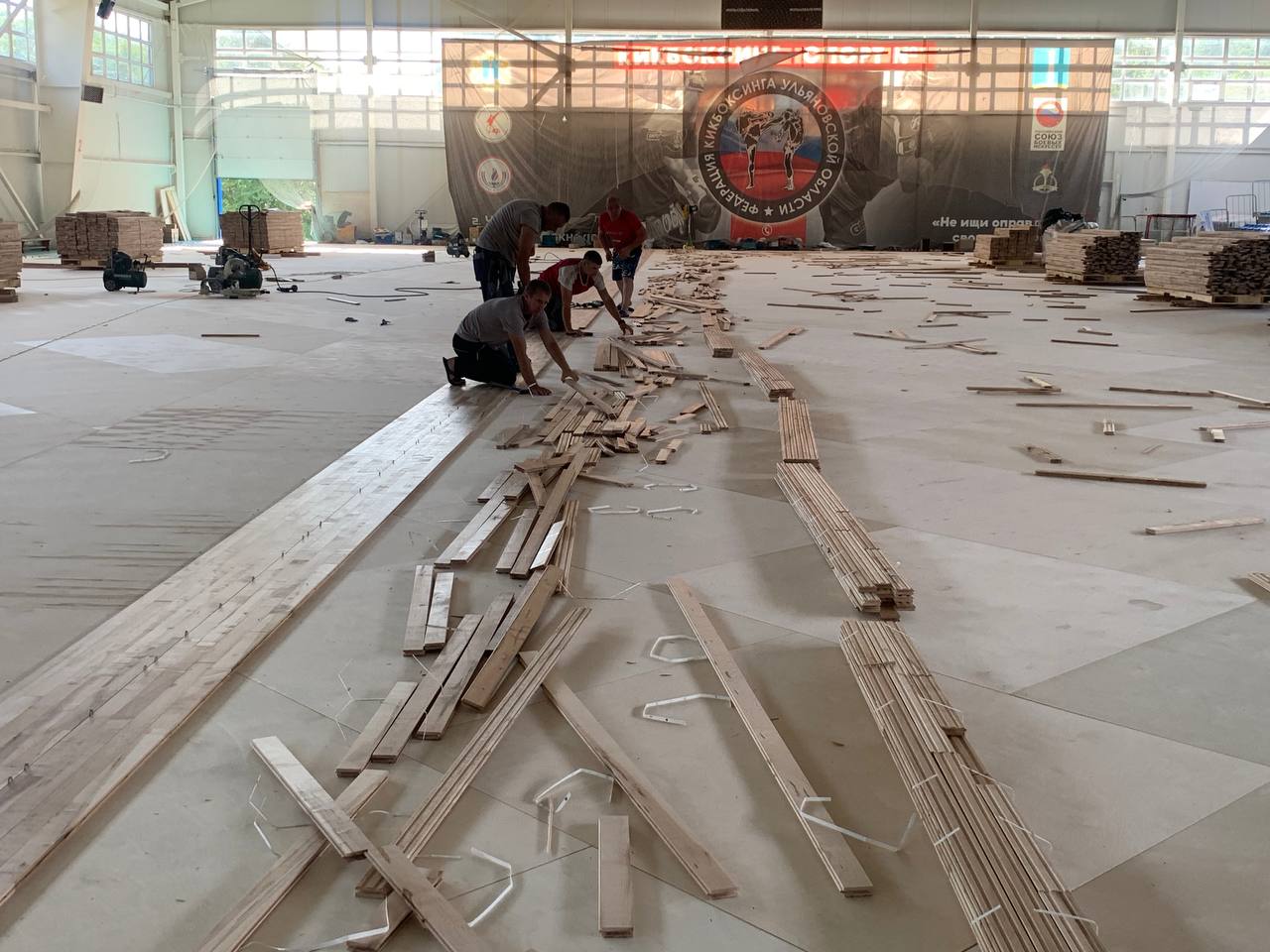 В Ульяновске в УСК «Новое поколение» продолжается устройство нового специализированного паркета для игры в мини-футбол,