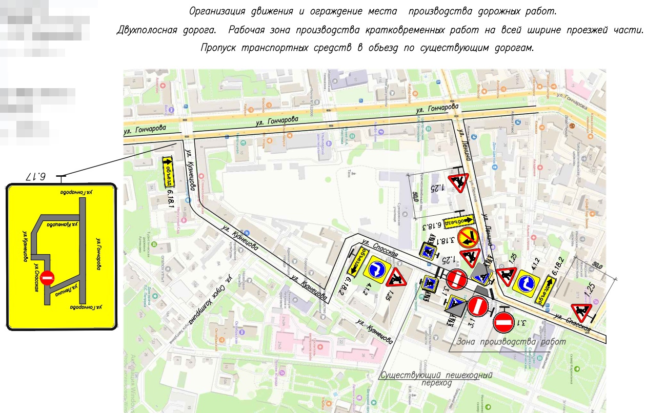 При этом общественный транспорт будет следовать по улицам Ленина и Гончарова в соответствии с временной схемой объезда.