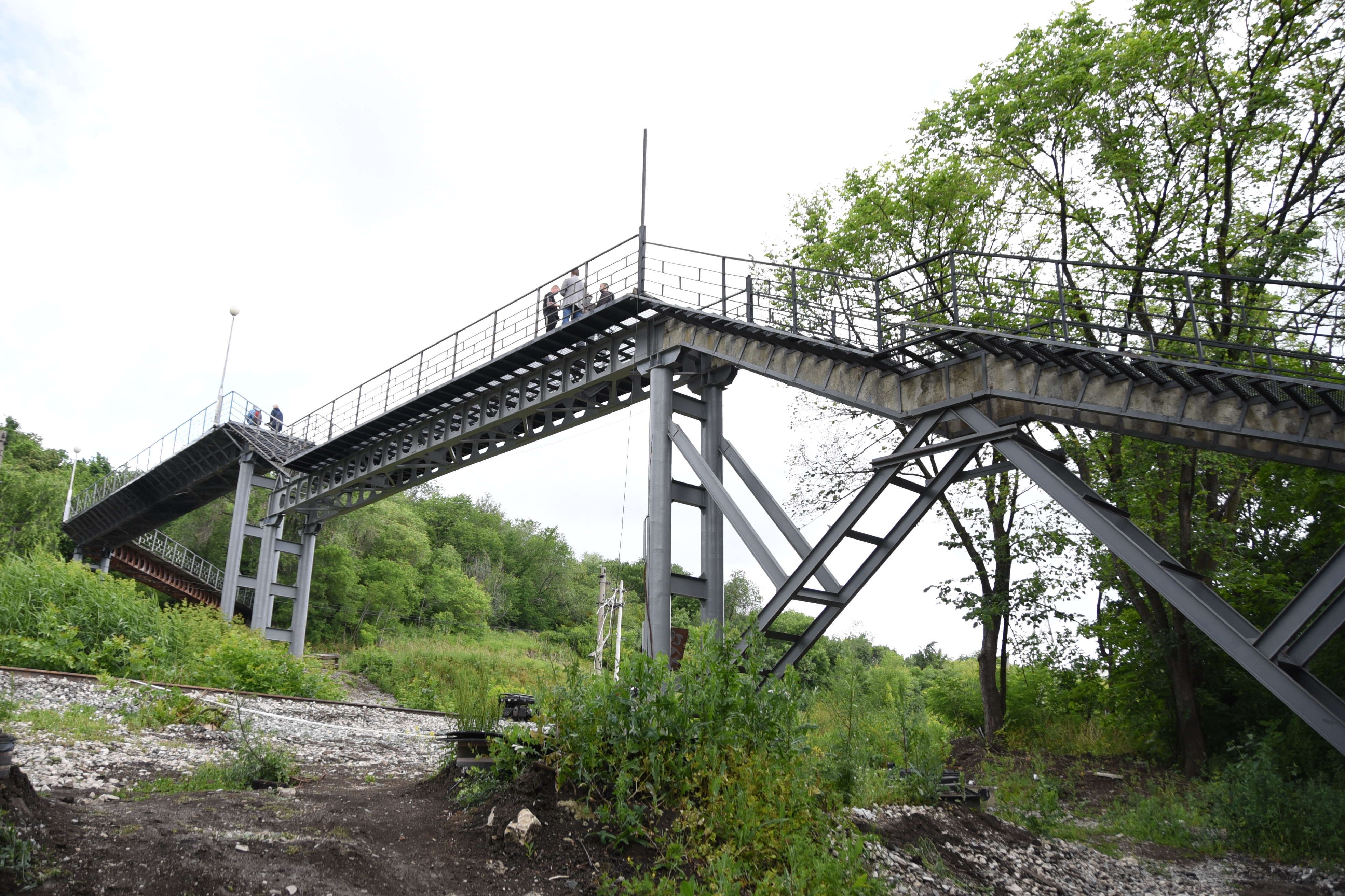 - На первом этапе мы демонтировали бетонные ступени, усилили несущие элементы лестницы и сделали новые ступени из металла. Тем самым мы облегчили вес всей конструкции, благодаря чему пешеходный мост будет служить намного дольше. Вторым этапом мы демонтировали бетонное покрытие, которое пришло в неудовлетворительное состояние и начало разрушаться. Затем усилили основание и уложили металлические листы с просечкой. Это позволит в дальнейшем не допускать скоплений снега на мосту и облегчит его обслуживание в зимний период. Все металлические элементы обработаны специальной грунтовкой и окрашены в два слоя, – рассказал Антон Шевченко.