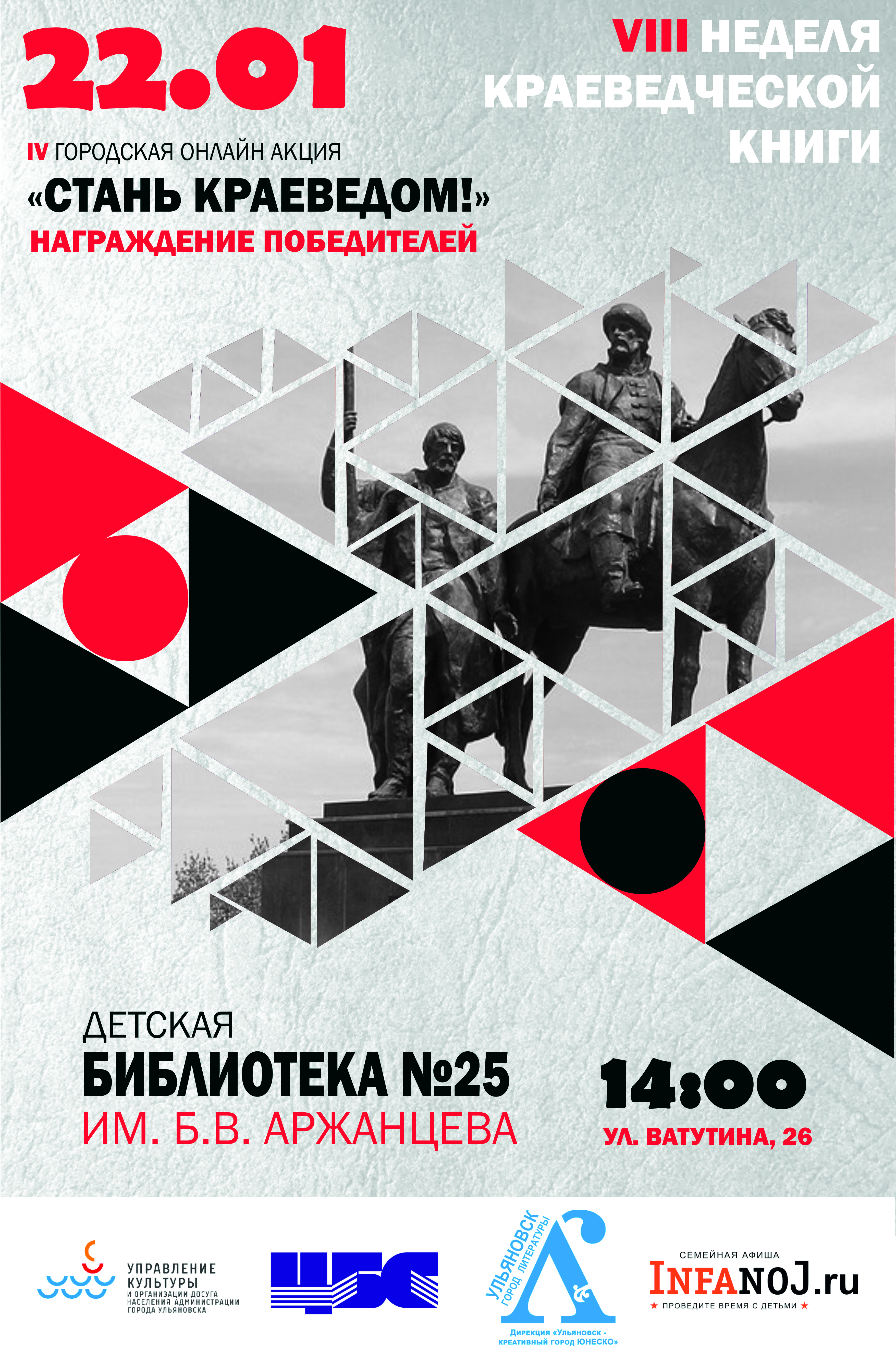 Завершится Неделя краеведческой книгиподведением итогов онлайн-акции «Стань краеведом» 22 января в детской библиотеке №25 им. Б.В. Аржанцева. Начало – в 14:00.