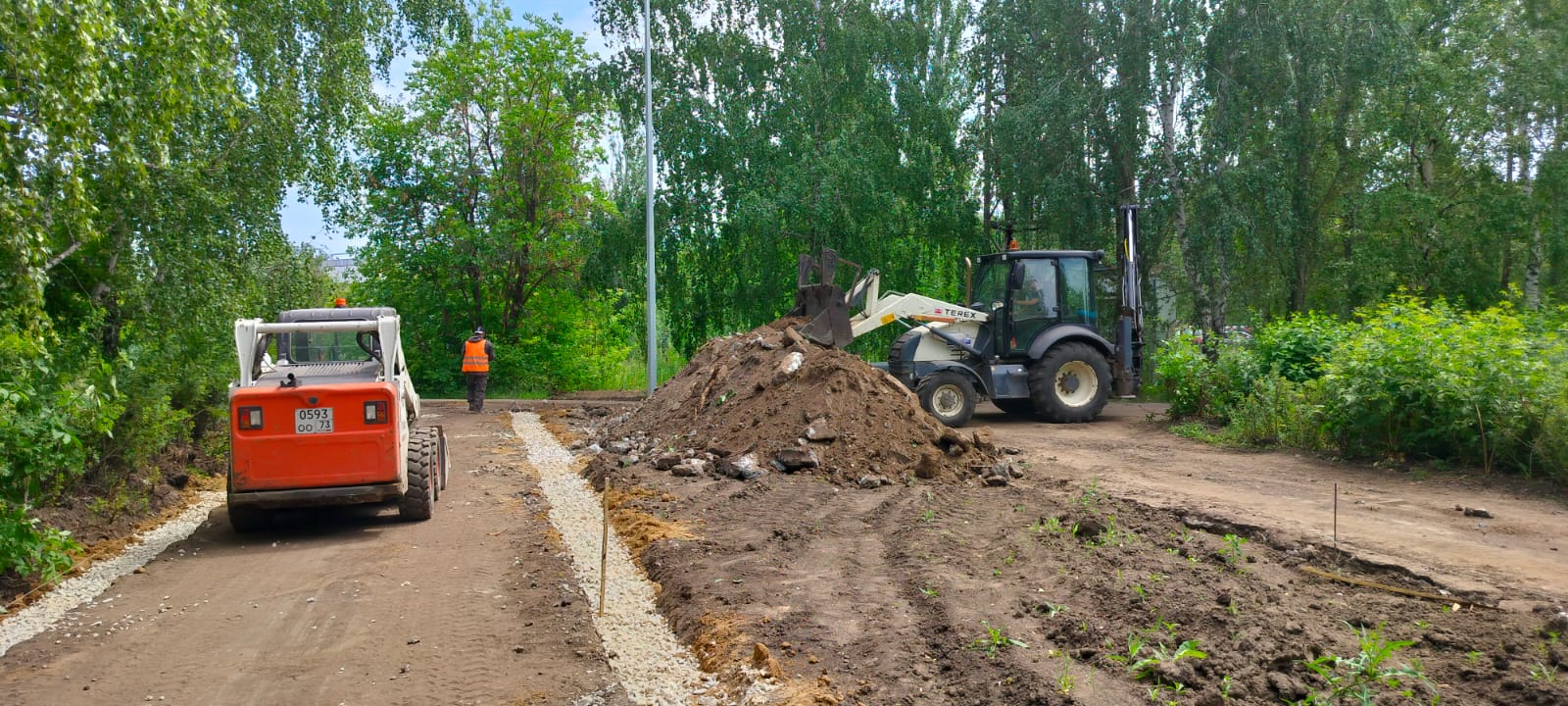 Эти преобразования начались весной и должны быть закончены к августу. Сейчас строители демонтировали старый асфальт, сделали разбивку территории и устанавливают новые бордюры. В дальнейшем будет выполнено асфальтирование тротуаров. В целом, все работы ведутся по графику.