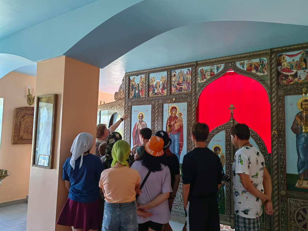 Смена началась с утренней гимнастики, посещения храма, молебна и трудового десанта.