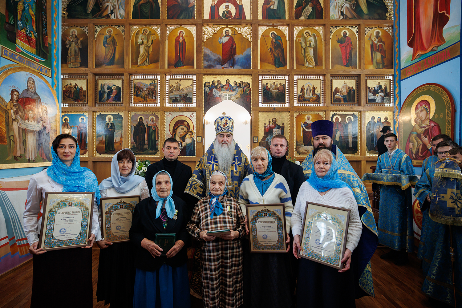 По окончании богослужения Митрополит Лонгин вручил старейшим прихожанкам храма Лидии Николаевне Шишкиной и Надежде Алексеевне Парфеновой медаль святого блаженного Андрея Симбирского III степени за многолетнее активное участие в жизни Покровского прихода.
