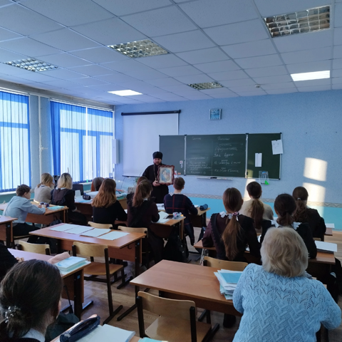 18 января протоиерей Алексий Исаев встретился с учениками 10 класса Новомалыклинской средней школы.