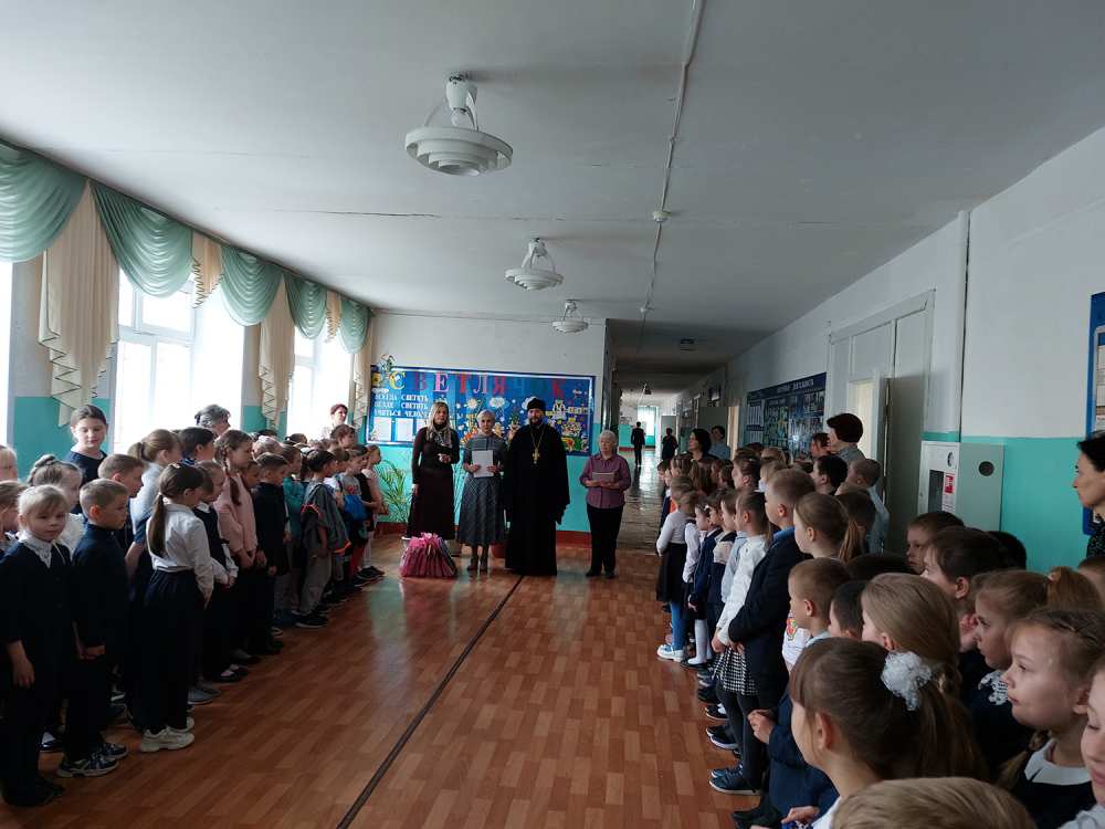 Настоятель храма св. мч. Татианы пос. Октябрьский иеромонах Иона (Черкасов) и сотрудники приходской социальной службы «От сердца к сердцу» Заживнова О. А. и Макарова Е. В. поздравили учителей и учащихся с праздником святой Пасхи, подвели итоги Пасхального конкурса, вручив победителям дипломы и сладкие подарки.