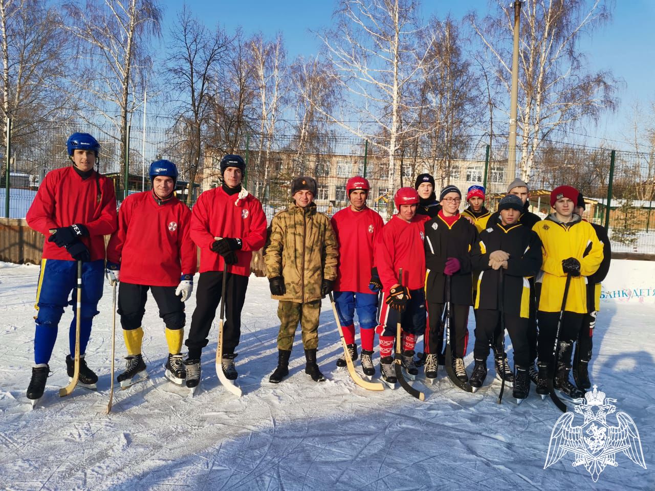 Встреча началась с дружеского матча по хоккею. Участники показали отличную игру, наполненную спортивным азартом и боевым настроем.