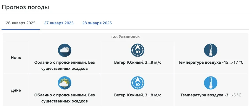 Прогноз погоды в Ульяновске на 26 января Прогноз погоды По информации Приволжского управления по гидрометеорологии и мониторингу окружающей среды, в воскресенье, 26 января,