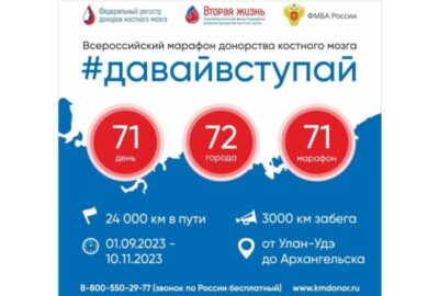 Всероссийский донорский марафон костного мозга «#ДавайВступай!» стартовал еще 1 сентября и охватит 72 российских города. Запланировано немало мероприятий по популяризации донорства. В каждом из городов амбассадор проекта Артем Алискеров, перенесший лейкоз и 24 курса химиотерапии, будет пробегать многокилометровый марафон. Ну и конечно, неравнодушных будут призывать пополнить ряды доноров костного мозга. Ульяновск присоединится к марафону в субботу, 23 сентября.