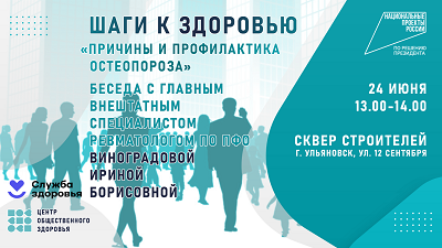 Напомним, профилактический проект «Шаги к здоровью» проводится в летний период региональным Центром общественного здоровья совместно с медицинскими организациями Ульяновской области и реализуется в рамках регионального проекта «Укрепление общественного здоровья» нацпроекта «Демография», направленный на продление здоровой и активной жизни.