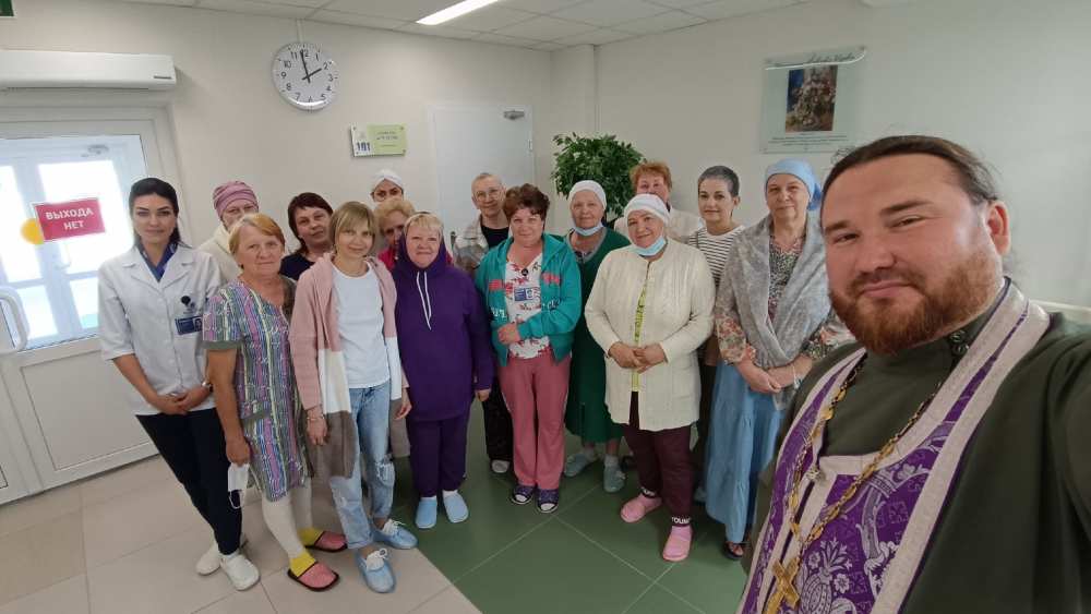 Отец Пётр совершил Таинство исповеди, а затем причастил пациентов Святых Христовых Таин.
