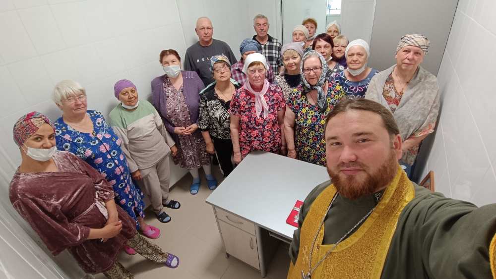 Отец Пётр совершил Таинство исповеди, а затем причастил пациентов Святых Христовых Таин.