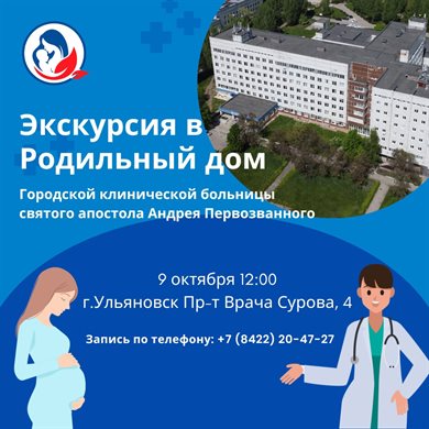 9 октября в 12:00 в акушерско-гинекологическом стационаре Городской клинической больницы святого апостола Андрея Первозванного в Ульяновске состоится ознакомительная экскурсия.