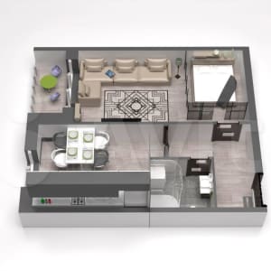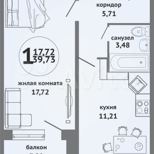 - Общая площадь: 39.7 м²