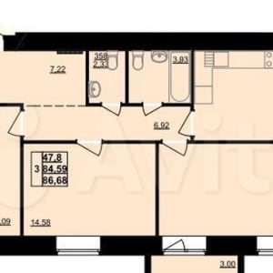 3-к квартира, 91.6 м², 7/7 эт.